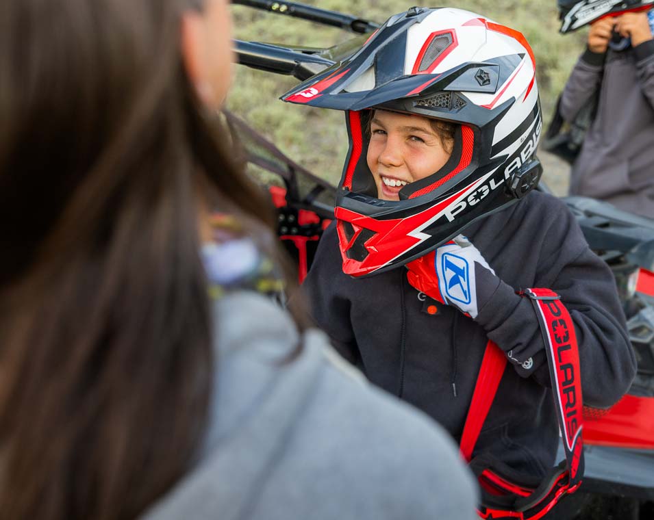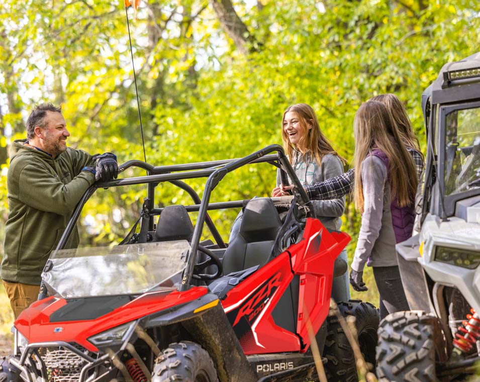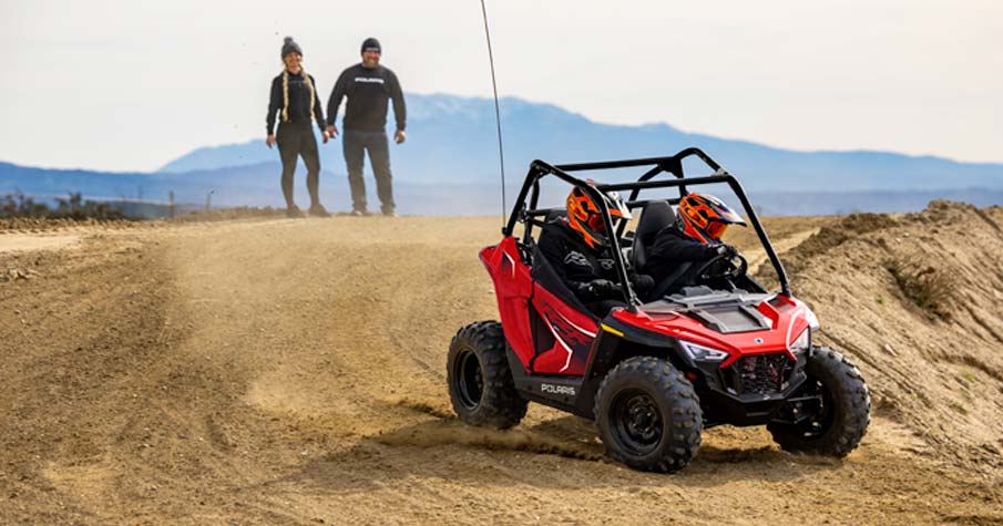 Le RZR 200 accompagne vos enfants de 10 à 16 ans tout au long de leur progression grâce au moteur EFI de 180 cm3, au siège et volant réglables, le siège passager et les accessoires en option.